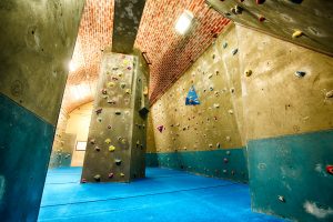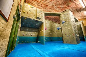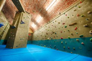 The Training Room is a total of 700 square feet of climbing area. Its features include a 5 sided 16-foot tower, curved wall, roof sections, chimney and overhangs. Our team of route setters are constantly planning and undertaking new route sets to keep the walls ever interesting.