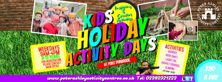 School Holiday Activities at Fort Purbrook, Peter Ashley Activity Centres, Portsmouth for children aged 8 to 13.